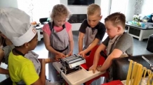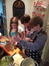 Remco die heel graag met zijn moeder kookt gaf een kookfeestje voor vriendjes en vriendinnetjes. Met een mooie koksmuts op en een schort aan gingen ze vlijtig aan de slag. Het zelf pasta draaien was tot wel het toppunt van de middag en dan ook nog afsluiten met chocolasagne en chocomousse was helemaal het einde. En met lege handen gingen ze niet naar huis ...